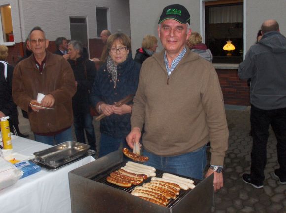 Grillmeister Wilhelm Hoppmann bei der Arbeit. Beim Anblick dieser knusprigen Würstchen lief den Gästen das Wasser im Munde zusammen.