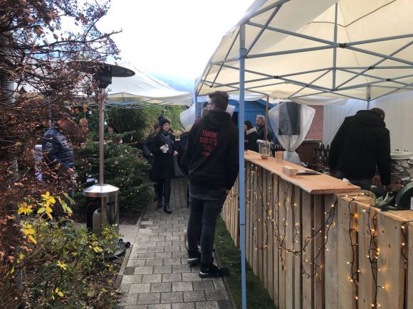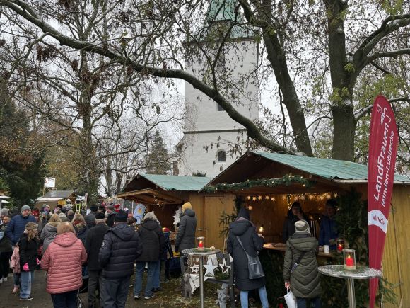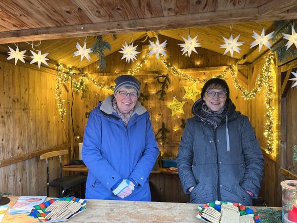 Eingebunden in das Marktgeschehen waren auch das Gemeindehaus und die Kirche. In dem großen Gemeindesaal waren etliche Verkaufsstände aufgebaut und die Kirche war geöffnet. Da sie beheizt war, konnten Marktbesucherinnen und Besucher sich aufwärmen, zur Ruhe kommen und sich auf Weihnachten besinnen.