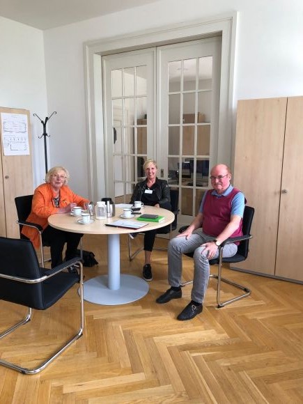 Im ehemaligen Salon wurden am runden Tisch gute Gespräche geführt. (v.r.) Herr Heinrich Sangershausen, Eigentümer und Geschäftsführer, Frau Nicola Franken, Qualitätsmanagerin und Hanna Hartmann vom HillerWebBlatt.