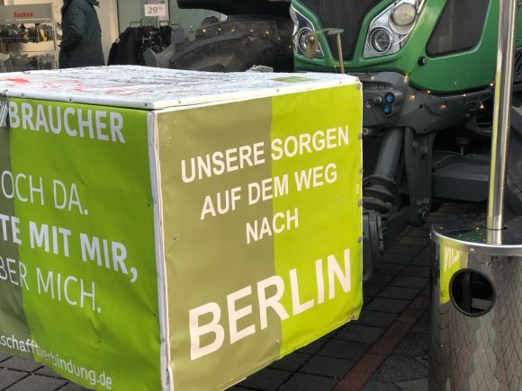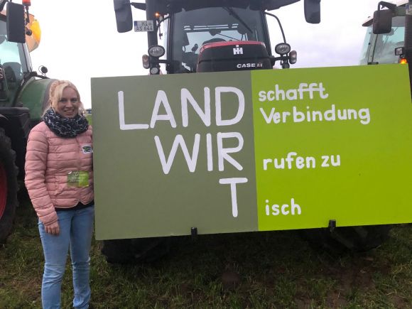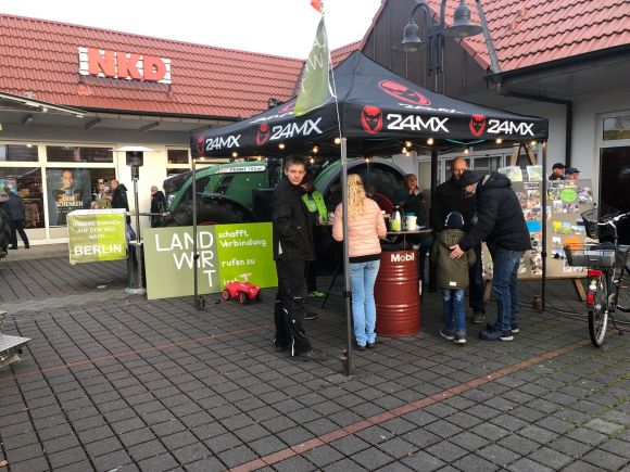 Junglandwirte hatten einen großen Trecker aufgestellt und einen Stand mit Infomaterial und einer Schautafel vorbereitet. „Wir wollen mit dieser Aktion mit den Verbrauchern ins Gespräch kommen und auf unsere schwierige Situation aufmerksam machen. Die neue Düngeverordnung, die zunehmende Bürokratisierung und die Agrarpolitik aus Berlin, machen uns Landwirten das Leben schwer,“ sagte Carolin Schöphörster, Junglandwirtin aus Holzhausen und Mitinitiatorin dieser Protestbewegung.