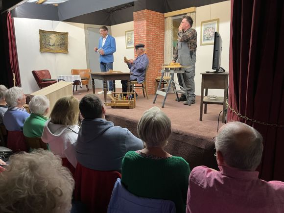 Der zweite Sketsch spielte in einer Tischlerwerkstatt. Hier ging es vor allem um den Lehrling, der immer aus dem Fenster schaute und darüber nachdachte, wie er die ganze Welt zu retten könne, denn Tischler seien ja letztendlich Philosophen.