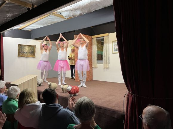 Selbst die Kulissenwechsel wurden humorvoll verpackt. Die „Bühnenarbeiterin“ Stefanie Dullweber wusste mit kecken Sprüchen den Kontakt zum Publikum herzustellen.