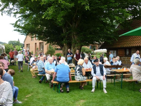 Die vielen Besucherinnen und Besucher konnten bei Kaffee und leckeren frischen Kuchen, den kurzweiligen Nachmittag genießen. Wer es etwas deftiger mochte, konnte an der Bratwurstbude den Hunger mit Bratwurst und Pommes stillen. Neben vielen Kaltgetränken gab es für die „Genießer“ an der Weintheke frische Erdbeerbowle, die schnell zum Renner wurde.