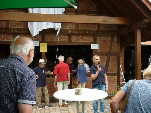 Die erste Vorsitzende des Heimatvereins, Bettina Hersemann, gab noch einige interessante Informationen zum Zifferblatt. ( Damalige Herstellungskosten, sowie Material und Anfertigung). Sie zeigte sich sichtlich erfreut darüber, dass hier doch ein Teil von historischer Bedeutung erhalten werden konnte.