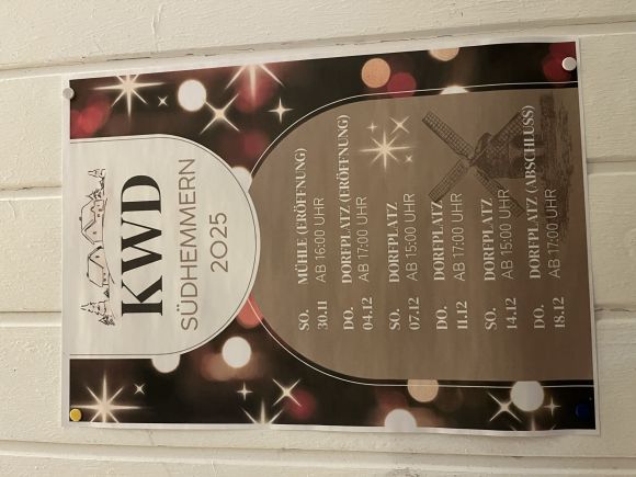 Der nächste KWD findet am Freitag, 06.12. 2024 am Kindergarten statt und der letzte Markt soll am Samstag, 21.12. an der Reithalle im Südhemmer Norden stattfinden. „Das ist uns wichtig, sagt Thomas Horstmann, „denn die kleine Hütte gehört dem Hiller Reiterverein und dient als Richterunterstand. Der Reiterverein leiht sie uns in jedem Jahr zur Adventszeit. Sie misst gerade mal 1,60 x 2,20 cm und darf auch keinen cm größer sein, sonst verlieren wir unseren Status „Der kleinste Weihnachtsmarkt Deutschlands zu sein“.
