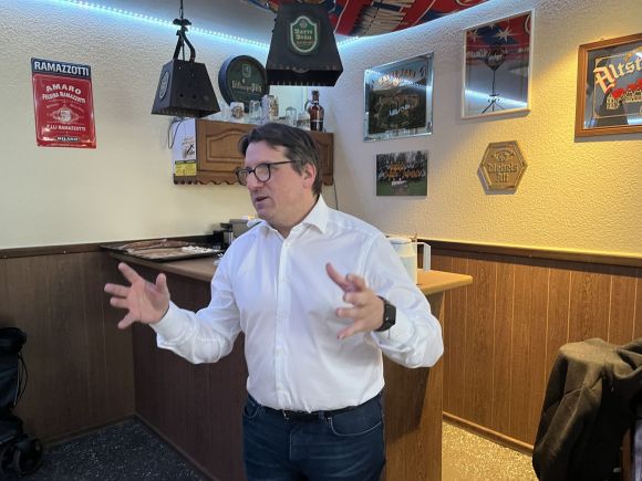 Bürgermeisterkandidat Friedrich Rohlfing begrüßte die Gäste und sagte u.a., dass es ihm wichtig sei, mit den Hillerinnen und Hillern ins Gespräch zu kommen und dass dieser Frühschoppen eine gute Gelegenheit dafür biete.