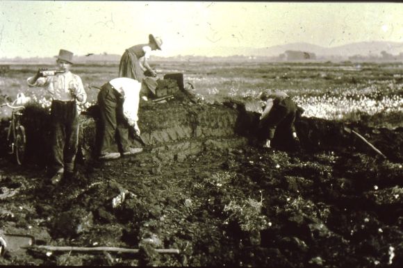 Aber auch andere, heute nicht mehr übliche Arbeitsweisen wurden gezeigt, wie die Gewinnung des Brandtorfes mit seinen Arbeitsgängen vom Stechen über trocknen bis zum Transport der Torfstücke mit dem Pferdegespann mit Holzschuhen in den heimischen Torfschuppen oder die Hausschneiderei und den Stuhlmacher der „Hiller Stühle“.