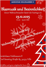 Mit stimmungsvoller Blasmusik, wärmendem Glühwein und gemütlicher Atmosphäre stimmt der Musikzug Holzhausen II auch in diesem Jahr wieder auf das Weihnachtskonzert ein. Am 23. Dezember 2025 verwandelt sich das Gelände rund um das Gerätehaus Holzhausen II von 16 bis 19 Uhr in einen liebevoll gestalteten Treffpunkt voller Vorfreude und festlicher Klänge. mehr...