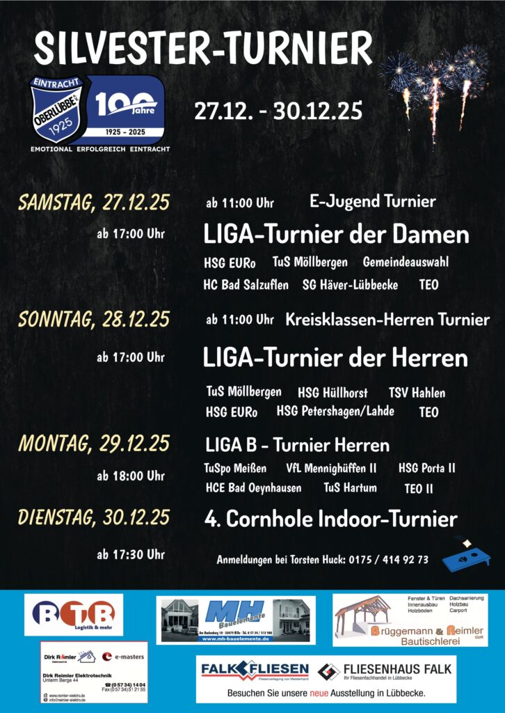 Hille-Holzhausen II. Beim diesjährigen Silvesterturnier gab es gleich am ersten Turniertag eine Premiere. Neben Handballspielen fand auch eine Cornhole- Challenge statt. Diese Premiere war von Erfolg gekrönt. Das „Säckchenwerfen“ wurde begeistert aufgenommen. 32 Mannschaften hatten sich angemeldet. mehr...
