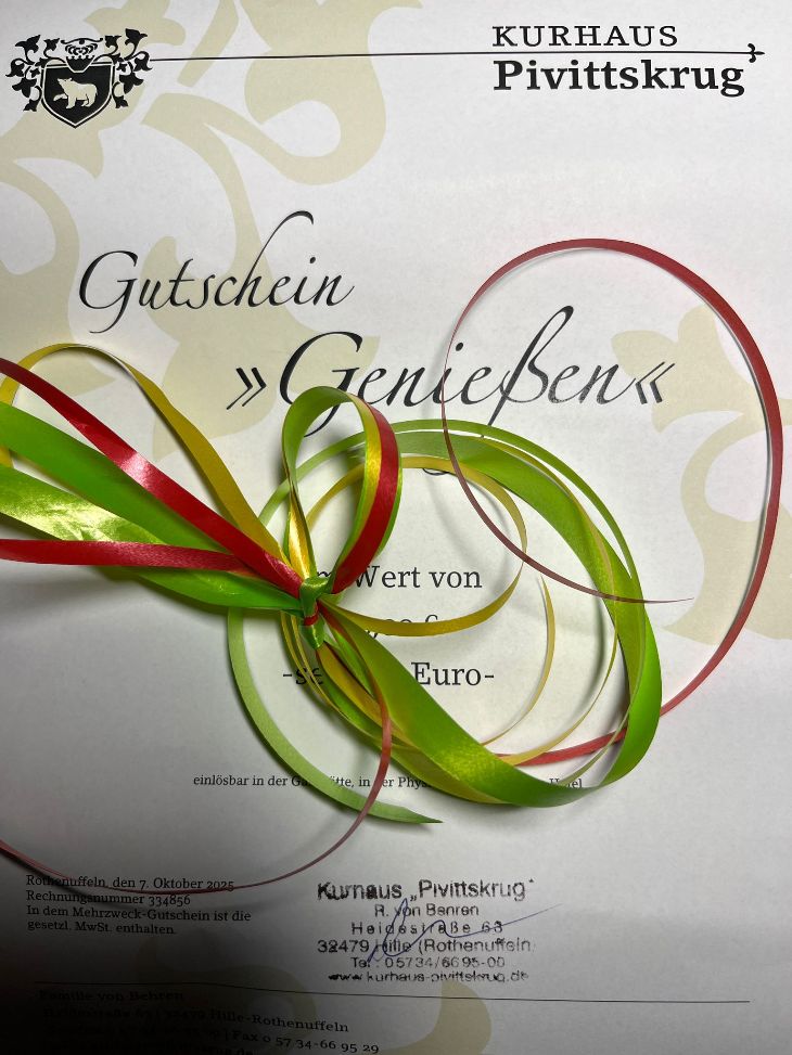 „Gutschein für ein Essen zu zweit“ im Kurhaus von Behren in Rothenuffeln
