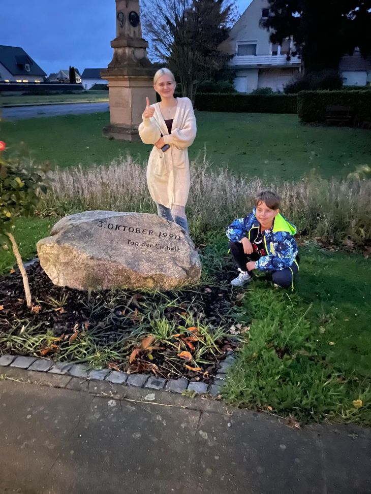 Vor einigen Jahren pflanzte Holger Diekmann eine Rose neben den Stein und rückte damit den Gedenkstein und die Deutsche Wiedervereinigung in den Blickpunkt. In diesem Jahr hat sich das Redaktionsteam des HillerWebBlattes etwas Besonderes ausgedacht. Sie haben ein Suchspiel „Wo liegt dieser Stein“ organisiert. Mit etwas Glück konnten die Teilnehmerinnen und Teilnehmer ein „Essen zu zweit“ im Kurhaus von Behren in Rothenuffeln gewinnen. Auch mit diesem Suchspiel wurde an den Stein und an die Wiedervereinigung vor 35 Jahren erinnert. Sie steht nach wie vor für Frieden und Freiheit.