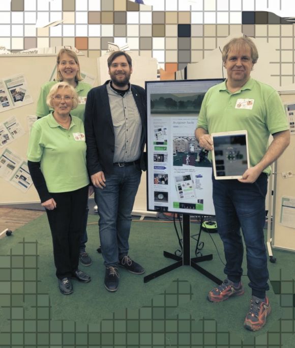 (im Bild von links nach rechts) Gemeindeverbandsvorsitzende der CDU Hille, Hanna Hartmann, Anwendungsentwickler des HillerWebBlatts, Frank Ovesiek und NRW Landtagsabgeordnete Bianca Winkelmann