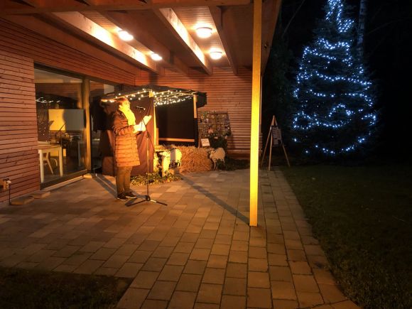 Kaum erklangen am Samstag, d.12.12., die ersten Lieder, kamen auch schon die ersten Gäste. Sie stellten sich im Halbkreis im vorgeschriebenen Abstand um die Musiker und summten die bekannten Lieder leise mit. Beendet wurde dieser kleine musikalische Beitrag mit dem Abendlied von Matthias Claudius „Der Mond ist aufgegangen.“