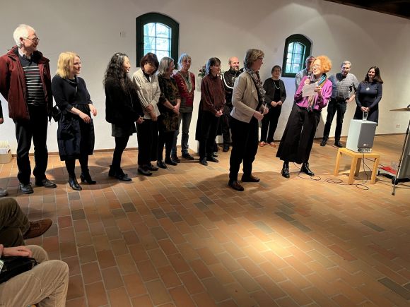 Danach begaben sich die Gäste ins nahegelegene Herrenhaus. Hier waren die Kunstwerke ausgestellt und konnten bewundert werden. Da hier auch einige Künstlerinnen und Künstler anwesend waren, entwickelte sich ein reger Gedankenaustausch zwischen Künstlern und Gästen.