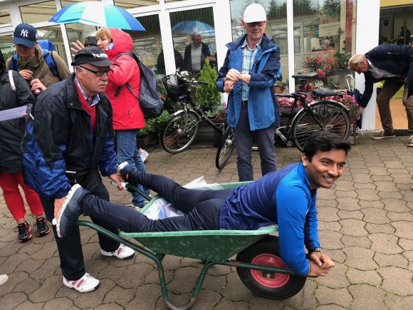Sportfest des VfB Holzhausen II 2019: Orientierungsmarsch, hier Schiebkarrenrennen
