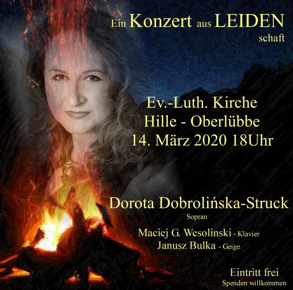 Wie jedes Jahr in der Passionszeit möchte Dorota Dobrolinska-Struck mit ihrer Konzertreihe viele Menschen erreichen und lädt ALLE Mitmenschen bei freiem Eintritt, zu ihrem Konzert ein.