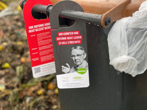 Bei den stichprobenartigen Tonnenkontrollen werden von den Müllwerkerinnen und Müllwerkern nur Behälter stehengelassen, wenn gravierende Mängel vorliegen. Die Behälter werden in diesem Fall mit einem roten Tonnenanhänger versehen, der auf die fehlerhafte Befüllung hinweist. Der Tonnenanhänger liefert Hinweise zur richtigen Sammlung von Bioabfällen. In diesem Fall sollten die Störstoffe bis zur nächsten Abfuhr entfernt werden. Falls die Kapazität der Biotonne bis zur nächsten Abfuhr nicht ausreicht, bietet die KAVG den Tonnenbesitzern als Service an, ihren (dann allerdings von Störstoffen bereinigten) Bioabfall zum Entsorgungszentrum Pohlsche Heide in Hille zu bringen.