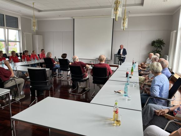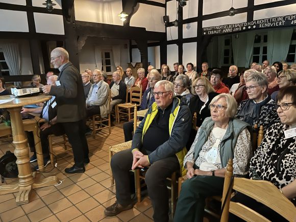 Am 30.08.2025 fand die Seniorenfeier in Südhemmern statt. Ab 14.00 Uhr strömten 70 Gäste in das Müllerhaus. Sie wurden vom Ortsvorsteher Rolf Tiemann und Ratskollegin Susanne Steuber begrüßt. Nach den Begrüßungsworten begann das Kaffeetrinken. Es gab einen lebendigen Austausch unter den Gästen. Viele freuten sich neue und alte Bekannte unverbindlich an einem neutralen Ort zu treffen. Einige neue Gesichter 70 + kamen das erste Mal. Stellvertretend für den Pastor bekam Dietrich Affeld das Wort. Er brachte die Tageslosung Jesaja 38 Vers 16: Herr auf dich vertraue ich. Du lässt mich genesen und am Leben bleiben, denn nur die Lebenden können Gott danken.
