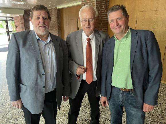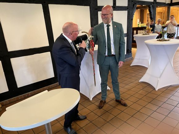Michael Schweiß war zu diesem Zeitpunkt noch der dienstälteste Bürgermeister im Mühlenkreis. An diesem Vormittag reichte er den Staffelstab weiter an Marko Steiner, Bürgermeister in Preußisch Oldendorf.