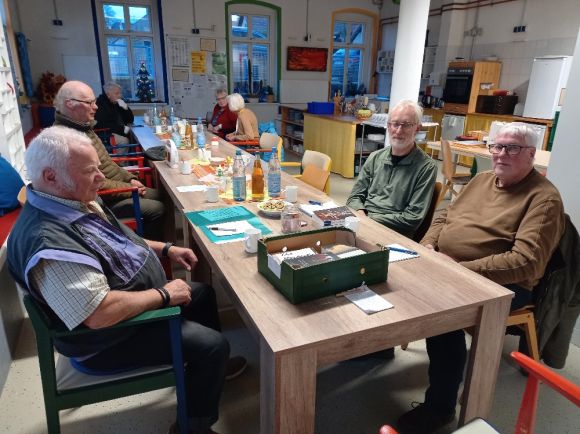 Bürgerinnen und Bürger über 70 Jahre in gemütlicher Runde zusammen.
