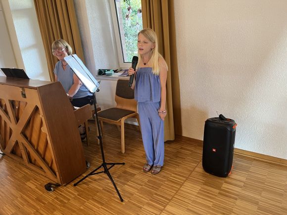 Für den musikalischen Rahmen sorgten Johanna Gartmann und ihre Tochter. Clara. Die junge Sängerin trug einige Lieder vor, die Johanna Gartmann am Klavier begleitete.