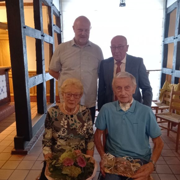 Zum Schluss wurden noch die älteste Teilnehmerin und der älteste Teilnehmer (Hilde Priess und Heinz Dresing) vom Ortsvorsteher mit einem Blumenstrauss bedacht.