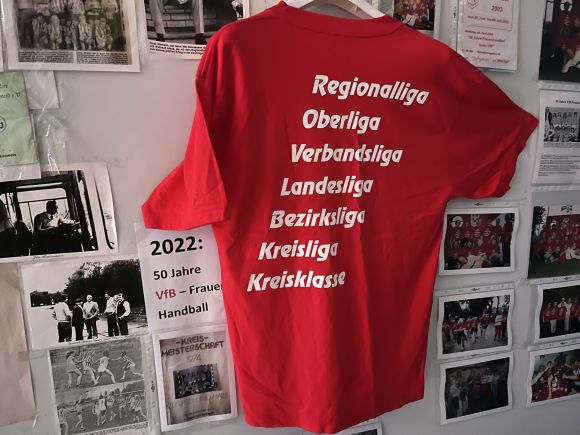 Auf dem Trikot war der erfolgreiche Werdegang der Handball Damen dokumentiert