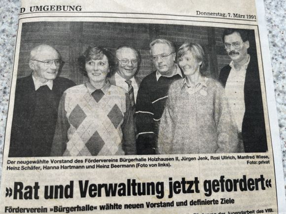Nach diesem Erfolg löste sich der Förderverein Bürgerhalle nicht auf. Er kümmerte sich weiter um die Ziele, die auch in der Satzung festgeschrieben waren: Förderung des Sports und der Jugend.