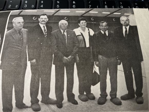 Der neue Vorstand, gewählt im März 1991. Foto WB, privat, v.l. Kulturwart Heinz Beermann, stellv. Vors. Hanna Hartmann, Heinz Schäfer, 1. Vors. Manfred Wiese, Schriftführerin Rosi Ullrich und Kassenwart Jürgen Jenk