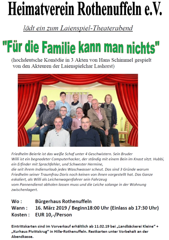 Als Kompliment - in der Überschrift - vorweg, das was die Lashorster Theaterbühne alljährlich immer weider (auch) in Rothenuffeln, beim dortigen Heimatverein eben auf diese Bühne bringt, ist klasse!