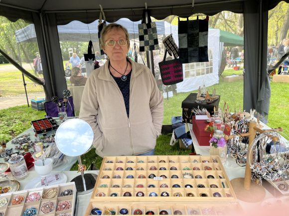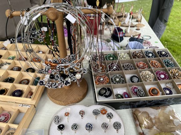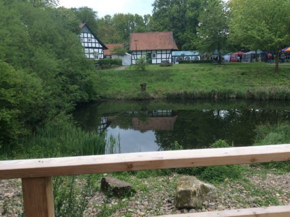 Auch auf der Wiese vor dem Heuerlingshaus gab es ein reichhaltiges Angebot. Der Messerschleifer Dieter Krawert aus Bad Oeynhausen bot in seiner mobilen Werkstatt seine Dienste an. Marmelade, selbst gebastelte Karten, Tischdecken und Schmuck konnten erworben werden.