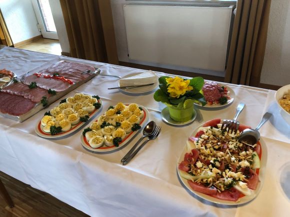 Schon beim Betreten des Gemeindehauses wurden die Gäste von einem angenehmen Kaffeeduft empfangen und ein üppiges Frühstücksbüffet war vorbereitet.