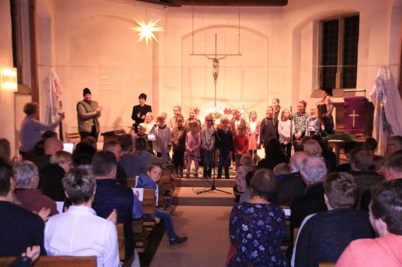 Fast 20 Kinder im Alter von 4 bis 10 Jahren, unterstützt von 5 Erwachsenen, sorgten für ein kurzweiliges und für jeden leicht zu verfolgendes Musical. Nach gut einer Stunde hat jeder Besucher verstanden, wie ein weiteres Licht täglich die Wartezeit auf Weihnachten verkürzt hat.