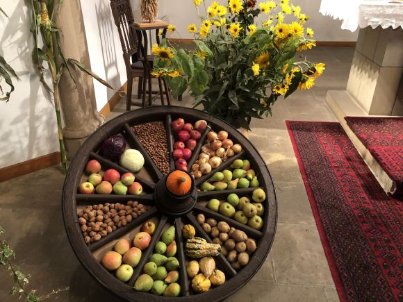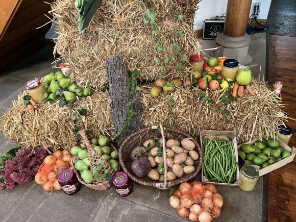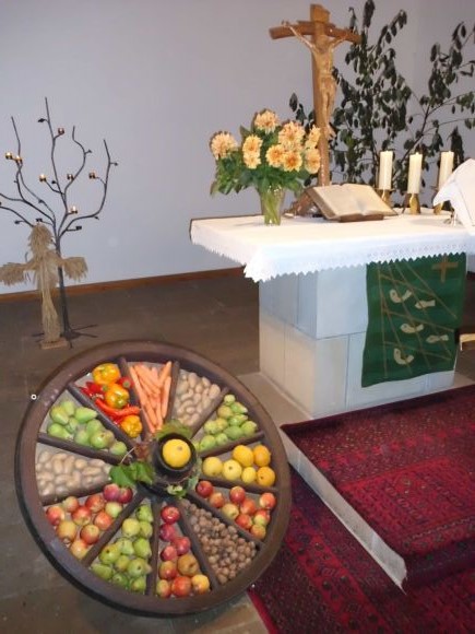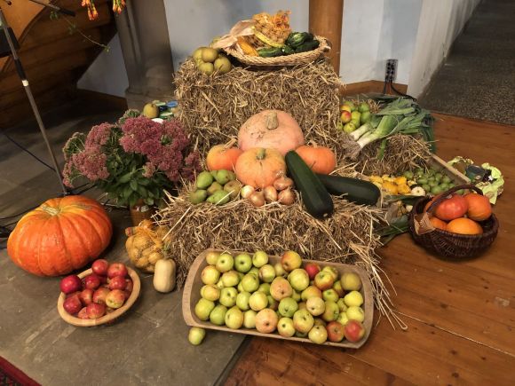 Im Erntedankgottesdienst haben wir Gott für die Gaben der Ernte gedankt.