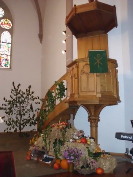 Für den musikalischen Rahmen sorgte der Posaunenchor unter Leitung von Anita Teigelmeister und der Ki Wi - Chor unter Leitung von Johanna Gartmann. Der Altarraum war mit Obst, Gemüse, weiteren Lebensmitteln und Blumen geschmackvoll geschmückt und der Dank für alle guten Gaben zog sich durch den gesamten Gottesdienst.