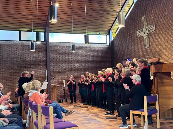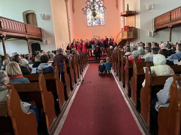 Die Regenbogensänger und Johanna Gartmann ernteten für diese gelungene Aufführung viel Beifall. Pastor Weber führte weiter durch diesen lebendigen Taufgottesdienst, der mit einem Kirchenkaffee ausklang.