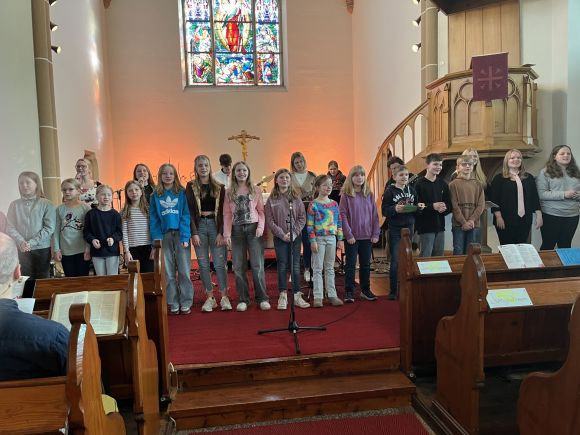 Der Gottesdienst begann mit dem fröhlichen Lied „Einfach Spitze, dass du da bist“. Pfarrer Andreas Wilmsmeier und Pfarrer Dieter Maletz führten durch den Gottesdienst. Die Lesung stand im Alten Testament im 1. Buch der Könige im 8 Kapitel, Vers 22 bis 28. Pfarrer Maletz hielt die Predigt. Er führte u.a. aus, dass mit dem Wort Himmel in der Bibel nicht nur das Weltall gemeint ist, sondern der Himmel kann überall sein. Jeder Mensch kann Jesu Christus in der weiten Welt, aber auch hier und heute erfahren. Pfarrerin Katrin Berger sprach das Fürbittengebet und mit dem Lied „Gut, das wir einander haben“ wurde der Gottesdienst beendet.