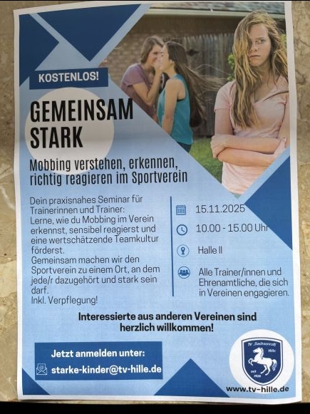 Mobbing kann überall entstehen – auch im Sportverein. Oft bleibt es lange unentdeckt, weil es sich leise und schleichend entwickelt. In diesem praxisnahen Seminar lernst du: