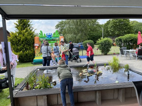 Das Fest war bestens vorbereitet, ein großes Zelt stand auf dem Hof, der Feuerwehrmusikzug Holzhausen II sorgte für eine fröhliche Stimmung. Zur Freude der kleinen Gäste war eine Hüpfburg im Garten aufgebaut worden. Mit Kaffee, Kuchen ,Waffeln, Bratwurst und kalten Getränken wurde für das leibliche Wohl bestens gesorgt.
