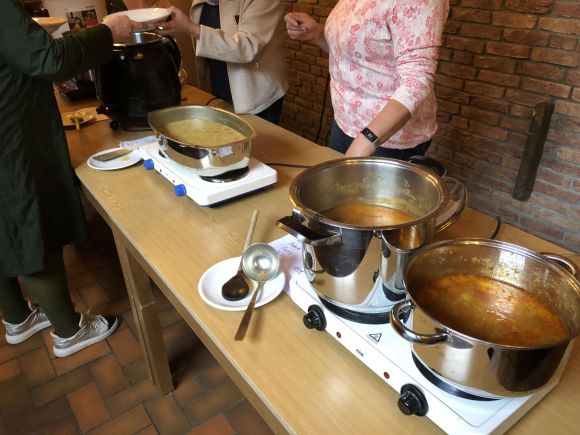 Im Anschluss an den Gottesdienst wurde zu einem gemeinsamen Mittagessen in das Gemeindehaus eingeladen. Hier wurden neben Bratwürstchen vom Grill drei afrikanische Suppen serviert.