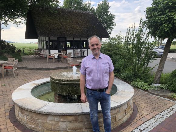 Hier wird Ralf von Behren die Gäste willkommen heißen. Im Hintergrund das Brunnenhaus, das als Bühne dienen wird.