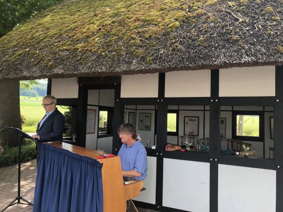 Hille-Rothenuffeln. Gut besucht war das Konzert am letzten Sonntagnachmittag, das am Kurhaus von Behren stattfand. Der Eingangsbereich war mit Tischen und Stühlen ausgestattet und das Brunnenhaus diente als Bühne. Hier hatte das Klavier seinen Platz gefunden und hier trat auch der Sänger Peter Krudup von Behren, Bass-Bariton aus Bielefeld, auf.