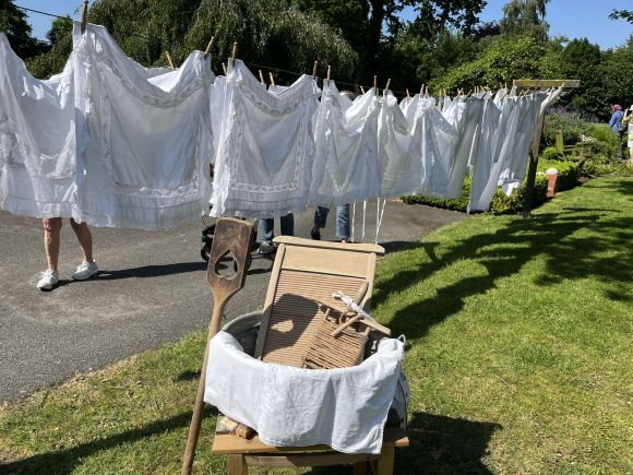 Ausgestellt waren unter anderem eine Wäschemangel, Utensilien, die früher zum Wäschewaschen gebraucht wurden, ein Herd, auch Kochmaschine genannt und ein Karren mit Milchkannen.