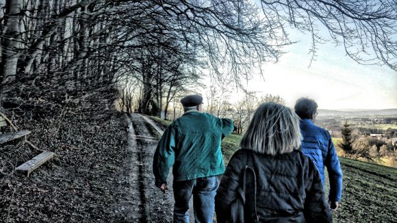 Der Liebesweg schlängelt sich am Rande des Wiehengebirges entlang, für seine Namensgebung bedarf es - in dieser landschaftlichen Schönheit - keiner langen Erklärungen. Betreten, wird er aber (neben manchen anderen Gruppen) an diesem Samstagmorgen von einer knapp 40-köpfigen Gruppe aus Rothenuffeln, unter denen sich, wie sich herausstellte, auch Kurgäste (Einheimische aus Cuxhaven) befanden, die (für manche Einheimische aus Rothenuffeln) überraschend, dieser "Berg-Moor-Fluss-Region" womöglich sogar noch mehr Anreize abgewinnen konnten, als der Nordseeküste ;-)