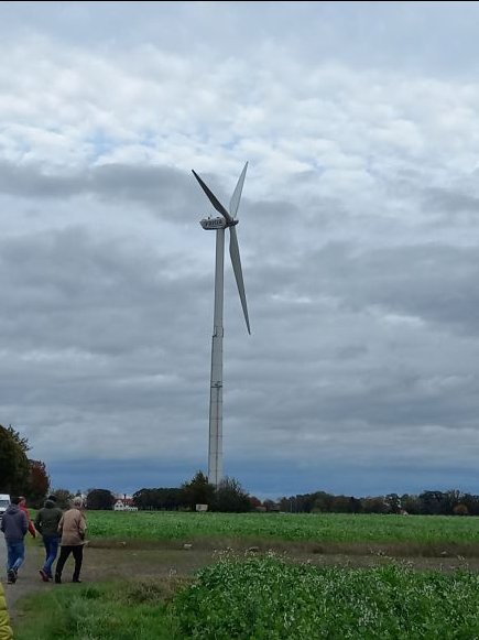 2. Besuch am Windrad. Bertram Schulte gab Informationen dazu. Das große Rad läuft seit 10 Jahren und produziert 2800 Kw pro Stunde. Damit können 2500 Haushalte versorgt werden. Das zweite defekte Windrad soll repowert werden. Für den weiteren Betrieb wurde eine Genossenschaft gegründet.