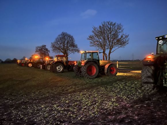 Der Vors. des landwirtschaftlichen Ortsverbandes Lutz Borcherding sowie die weiteren Mitglieder, Cord Rohlfing und Gerd Meyer, organisierten die Aktion. Lutz Borcherding hatte die Mahnwache für 30 Fahrzeuge bei der Polizei angemeldet. Die Beamten, die im Laufe des Abends vorbeischauten, waren mit der Organisation und dem friedlichen Verlauf der Demo sehr zufrieden.