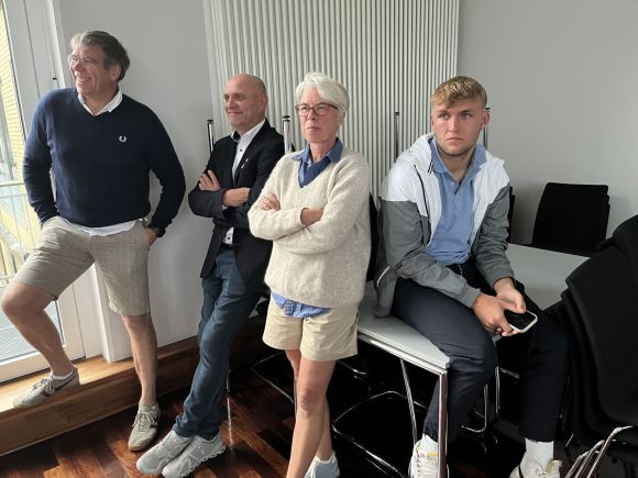 Friedrich Rohlfing (2.v.l. ) , Freunde und Sohn Mattis (1.v.r.) hatten sich um 18.00 Uhr im Rathaus eingefunden.