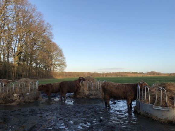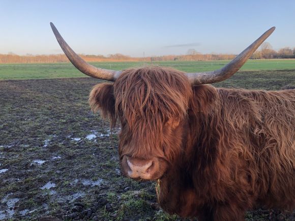 Ein ausgebauter Rundwanderweg von 2,2 km, führt an der Wiese der zehn schottischen Hochlandrinder, vorbei. Diese zotteligen, genügsamen Tiere leben im Sommer und im Winter auf dieser 20 Hektar große Weide. Die Biologische Station kümmert sich um die Tiere, denn im Winter muss Heu zugefüttert werden. Obwohl die Tiere imposante und spitze Hörner haben, sind sie friedliebend. Sobald sich ein Mensch an dem Futterplatz blicken lässt, wird er zunächst von den Tieren neugierig beäugt und dann freundlich begrüßt.