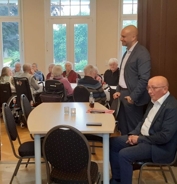Auch viele Bewohner unserer Residenz sind der Einladung gefolgt und haben die Gelegenheit genutzt, mit dem Landrat ins Gespräch zu kommen. Dabei haben Sie mit Interesse an dem Austausch teilgenommen. Es wurden aktuelle Themen aus dem Mühlenkreis, aber auch interne Themen der Pflege besprochen.