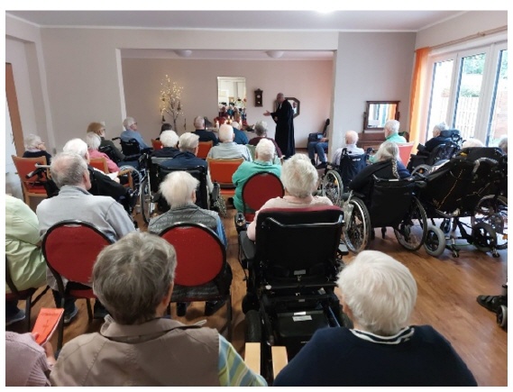 Aber auch die Bewohner, die bereits von uns gegangen sind, dürfen nicht vergessen werden. Für Heimbewohner, Pflegekräfte und Angehörige ist es wichtig, einen Ort zu haben, an dem an die Verstorbenen erinnert wird. In einem Gedenkgottesdienst mit Pastor Hagemeier haben wir den verstorbenen Bewohnern gedacht.